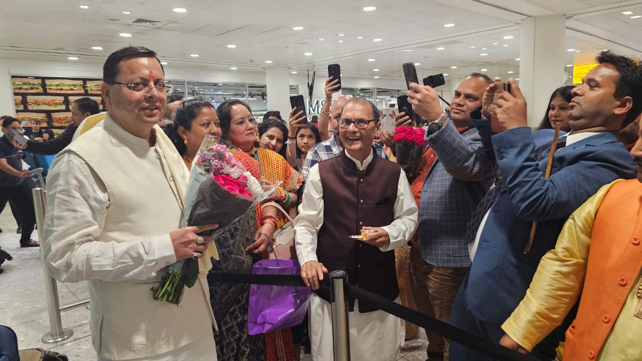 डेलीगेशन के साथ लंदन पहुंचे धामी, एयरपोर्ट पर प्रवासी उत्तराखंडियों समेत भारतीय समुदाय ने किया स्वागत