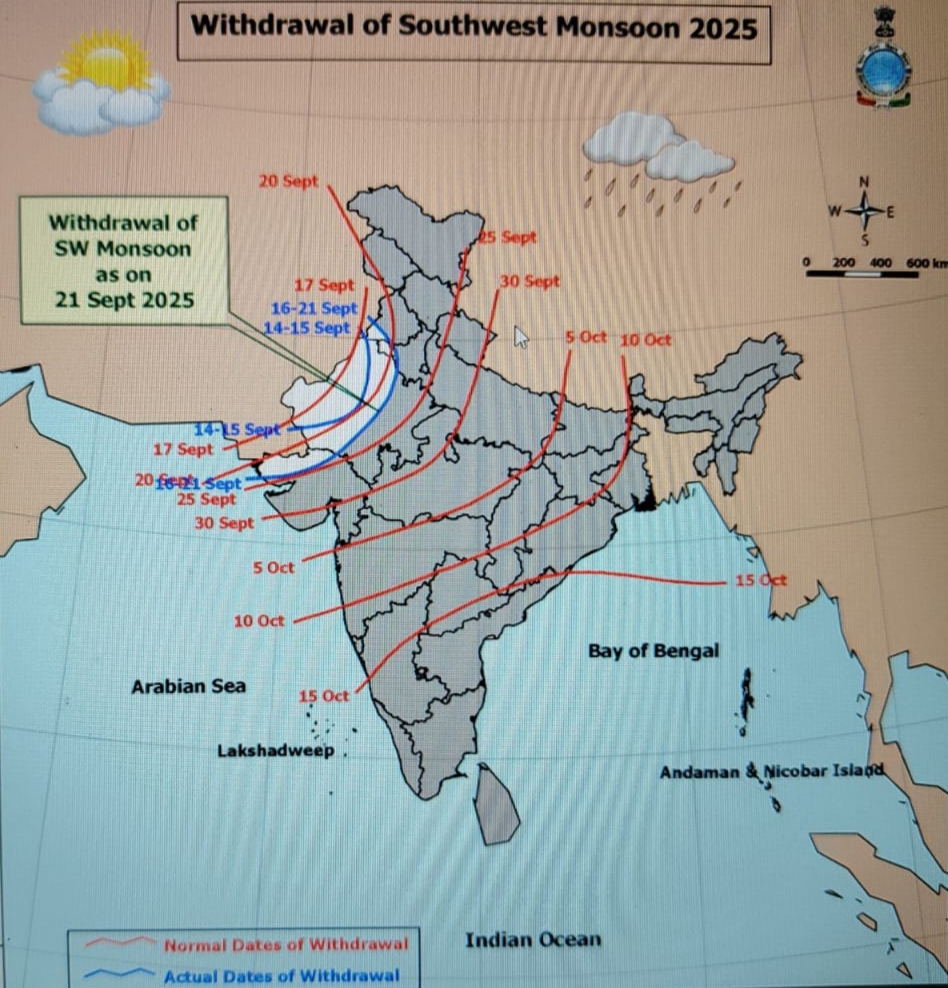 इस बीच, नई दिल्ली स्थित भारत मौसम विभाग के अनुसार, देश में दक्षिण-पश्चिम मानसून की वापसी का सिलसिला शुरू हो गया है। अगले 24 घंटे यानी सोमवार तक मानसून गुजरात, राजस्थान, पंजाब, हरियाणा के साथ ही हिमाचल प्रदेश, जम्मू-कश्मीर व उत्तर प्रदेश के कुछ हिस्सों से विदाई ले लेगा। वहीं, उत्तराखंड में अब फिलहाल 27 सितंबर तक मौसम आमतौर पर शुष्क रहने का पूर्वानुमान व्यक्त किया गया है, जिसके चलते किसी तरह का अलर्ट नहीं है। हालांकि, ‘स्थानीय कारकों’ से कहीं-कहीं हल्की-फुल्की वर्षा हो सकती है।