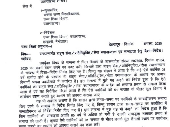 Read Moreदेहरादून। उच्च शिक्षा विभाग में 5 वर्ष से अधिक समय से संबद्ध सभी कार्मिकों की संबद्धता तत्काल प्रभाव से समाप्त