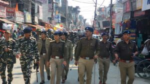 फ्लैगमार्च सीओ प्रेमनगर की अगुआई में पुलिस और एसएसबी की 62वीं बटालियन के जवानों ने त्यागी मार्केट, ठाकुरपुर, स्मिथनगर, मोहनपुर आदि क्षेत्रों में किया।