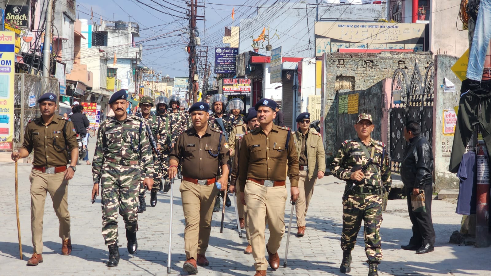 प्रेमनगर में पैरामिलिट्री और पुलिस का फ्लैग मार्च, बॉर्डर व बेरियरों पर गाड़ियों की चेकिंग