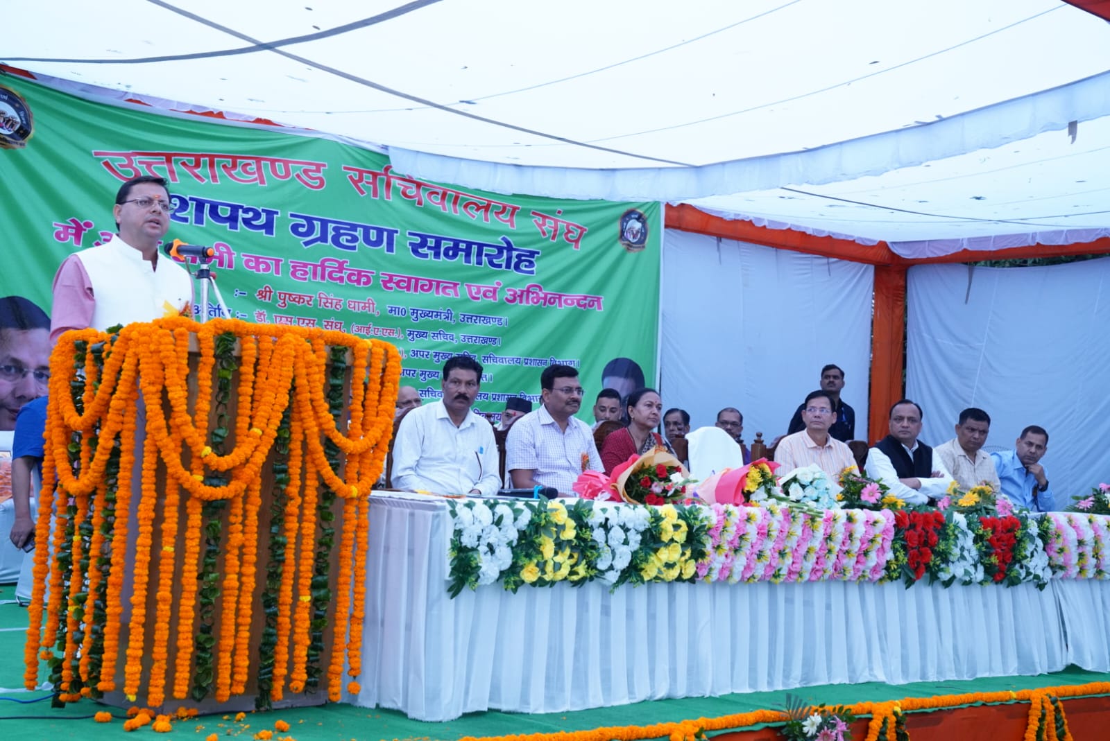 शुक्रवार शाम सचिवालय परिसर में आयोजित समारोह में मुख्यमंत्री ने सचिवालय संघ के नवनिर्वाचित अध्यक्ष सुनील लखेड़ा, उपाध्यक्ष जीतमणि पैन्यूली, महासचिव राकेश जोशी समेत कार्यकारिणी को शपथ दिलाने के साथ ही शुभकामनाएं दीं। इस अवसर पर उन्होंने कहा कि वर्तमान सचिवालय संघ में अधिकांश निर्वाचित पदाधिकारी व सदस्य उत्तराखंड राज्य आंदोलनकारी रहे हैं। जिन लोगों ने उत्तराखंड राज्य आंदोलन में सक्रिय रूप से भाग लिया, उन लोगों को इस राज्य के विकास व दूरदराज के आम जनमानस की चिंता होगी, ऐसा उनका विश्वास है। उन्होंने कहा कि बड़े सघर्षों के बाद उत्तराखंड राज्य का निर्माण हुआ है। हमें जन सेवा का भाव सदैव अपने मन में लाना होगा। जन संतुष्टि का सदैव हमारा प्रयास रहना चाहिए।