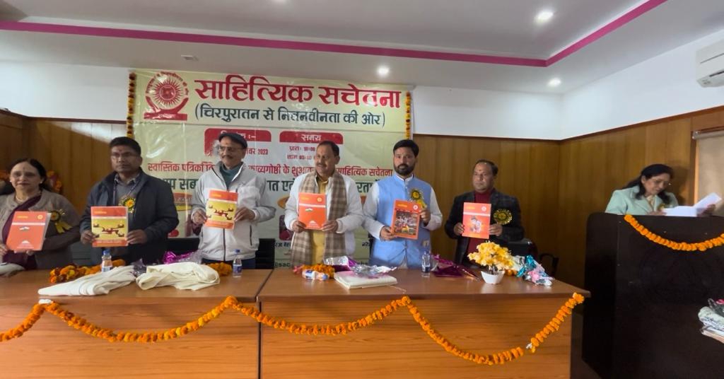 देहरादून। ‘साहित्यिक सचेतना’ की ओर से आयोजित कार्यक्रम में संस्था की पत्रिका ‘स्वास्तिक’ का विमोचन और कवि गोष्ठी का आयोजन किया गया। रेसकोर्स स्थित पदम सिंह शिक्षक भवन में बतौर मुख्य अतिथि डोईवाला के विधायक बृजभूषण गैरोला, संयुक्त निदेशक (नियोजन) दिनेश बडोनी, चमोली के मुख्य शिक्षाधिकारी कुलदीप गैरोला, डायट देहरादून के प्राचार्य राकेश जुगरान ने ‘स्वास्तिक’ का विमोचन किया।