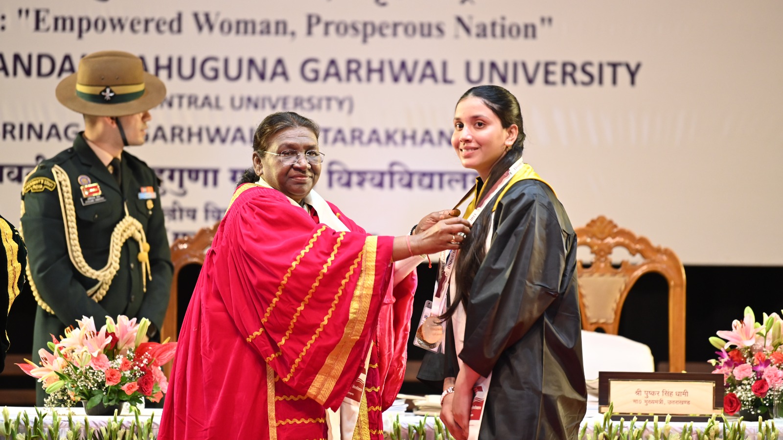 श्रीनगर। राष्ट्रपति द्रौपदी मुर्मू बुधवार को यहां चौरास स्थित हेमवती नंदन बहुगुणा गढ़वाल विश्वविद्यालय के 11वें दीक्षांत समारोह में मुख्य अतिथि के तौर पर शामिल हुईं और 59 छात्र-छात्राओं को स्वर्ण पदक प्रदान किए। इस मौके पर उन्होंने उपाधि और मेडल प्राप्त करने वाले सभी छात्र-छात्राओं को शुभकामनाएं देते हुए उनसे राष्ट्र निर्माण और समाज निर्माण में सकारात्मक भूमिका के निर्वहन की अपेक्षा की।