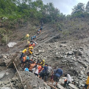 एक दिन पहले बनाया वैकल्पिक मार्ग भूस्खलन से क्षतिग्रस्त, एसडीआरएफ ने बनाया नया रास्ता