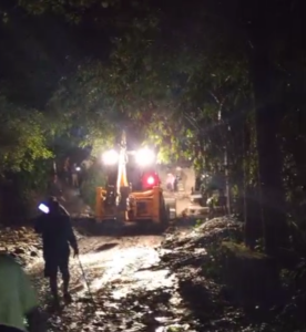 पानी और मलबे में भानु परिवार के तीनों सदस्य बह गए। आसपास कई गाड़ियां भी बह गईं। कुछ अन्य मकानों और दुकानों को भी नुकसान पहुंचा। घटना के तत्काल बाद जखन्याली, नौताड़ व सरोली के ग्रामीण मौके पर पहुंचे और तीनों लापता लोगों की तलाश शुरू की। घटनास्थल घनसाली तहसील मुख्यालय से करीब पांच किलोमीटर की दूरी पर है। लिहाजा, सूचना मिलते ही कुछ ही मिनटों के भीतर पुलिस, एसडीआरएफ, पीडब्ल्यूडी, ऊर्जा निगम और तहसील प्रशासन की रेस्क्यू टीमें मौके पर पहुंच गईं। देर रात मलबे से भानु और उनकी पत्नी नीलम का शव निकाल लिया गया। काफी मशक्कत के बाद एसडीआरएफ ने मलबे के साथ सड़क से करीब 200 फीट नीचे नदी की ओर बह गए उनके पुत्र विपिन को गंभीर अवस्था में निकालकर अस्पताल में भर्ती करवाया। विपिन को सामुदायिक स्वास्थ्य केंद्र पिलखी लाया गया, जहां जरूरी प्राथमिक उपचार के बाद उसे एंबुलेंस से एम्स ऋषिकेश के लिए रवाना किया गया। वीरवार तड़के टिहरी जिला प्रशासन की ओर से जानकारी दी गई कि एम्स ले जाते वक्त रात दो बजे घायल विपिन ने टिहरी डैम के टॉप के नजदीक दम तोड दिया। विपिन के शव को नई टिहरी के बौराडी स्थित जिला अस्पताल, जबकि उसके माता-पिता के शवों को पिलखी सीएचसी में रखा गया है। विशेषज्ञ डॉक्टर्स के साथ एक मेडिकल टीम नौताड़ भेजी गई है। प्रशासन के अनुसार, जखन्याली से सटे मुयालगांव में घनसाली-चिरबिटिया-तिलबाड़ा मोटरमार्ग को जोड़ने वाली पुलिया बह गई है। वैकल्पिक इंतजाम के लिए मौके पर जेसीबी व टीम भेजी गई है। हाईवे पर गिरे पेड़ हटाकर रास्ता खोला जा रहा है। क्षेत्र में ऊर्जा निगम ने एहतियात के तौर पर शटडाऊन लिया है। ज्यों ही स्थिति सामान्य होगी, विद्युत आपूर्ति सुचारू कर दी जाएगी। वहीं, पूर्व में आपदा प्रभावित बूढ़ाकेदार क्षेत्र में मलबा आने से एहतियात के तौर पर थाती गांव में तीन घरों को खाली करा लिया गया है। मौके पर एसडीआरएफ की तैनाती की गई है।
