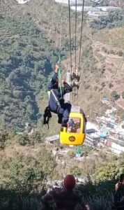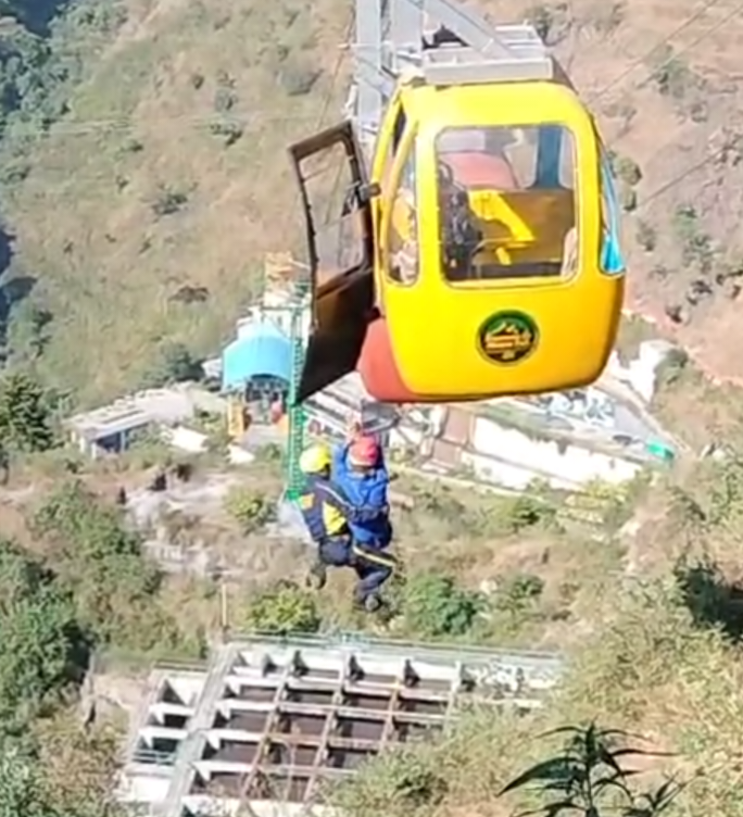 हवा में अटकी ट्रॉली से रोप के सहारे एक-एक कर रेस्क्यू किए ‘कृत्रिम’ पर्यटक